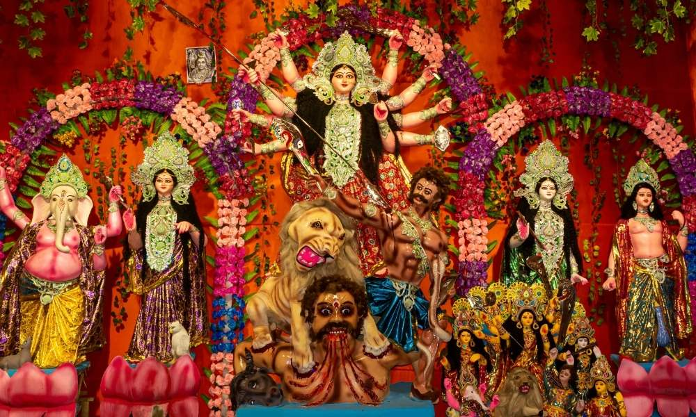 Navratri is a Hindu festival that is celebrated for 9 days every year. It marks the victory of good over evil. As per the legends, Mahisasur (a devil) was blessed with immortality by the Lord Brahma. But there is a catch in that one condition is there that a woman can defeat him. Mahisasur was okay with that and started to do his evil since no god was able to defeat him due to that boon. So when everything is getting out of hand at the time goddess Durga appears and defeated Mahisasur.