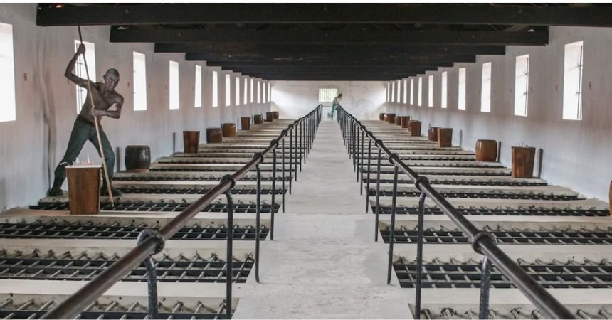 - Exhibits of prison cells, instruments of torture, and shackles.