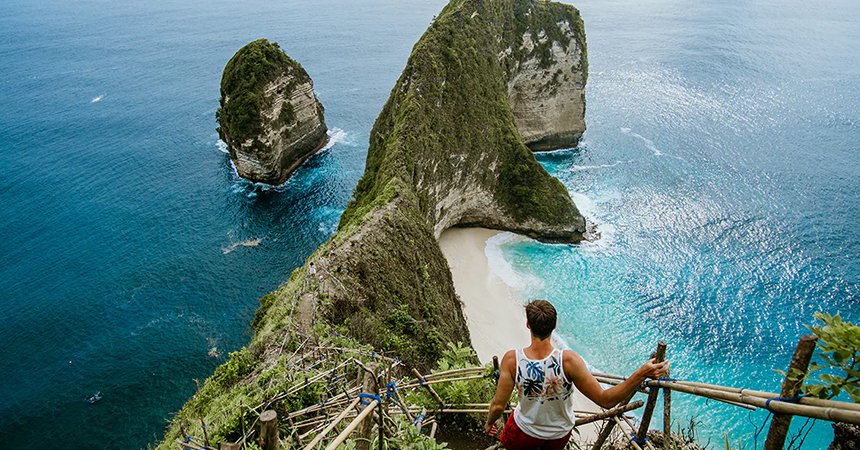 One of the less visited, but even more beautiful islands near Bali is Nusa Penida with breathtaking vertical cliffs, sandy beaches and very clear water.